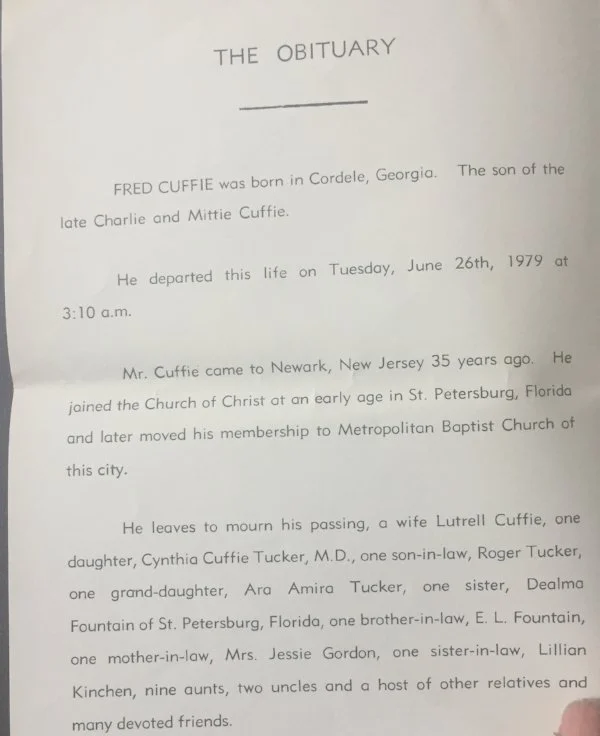Fred passed away on June 26, 1979. By that time, the city of Newark had changed, almost unrecognizable from the urban safe haven that my mother fondly recalls growing up in. But generations later, or at least what’s clear to me is that Fred was a man who lived his life with the purpose to do right by those he loved. I was fortunate enough to spend so many years with my Nana, but I wish, I wish I could’ve sat down with Freddie. So, dear Grandfather, this story is really for you, for everything that you were, and for everything you continue to be for me.