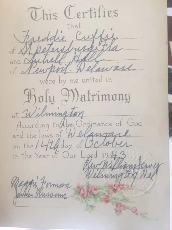 Fred and Lutrell were born in Georgia: Fred in Cordele and Lutrell in Waycross. But the two of them actually grew up in St. Petersburg, FL. Since Lutrell had gone to school with Fred’s younger sister Dealma, this is likely how the two of them met. While Lutrell graduated from high school, Fred only completed the ninth grade before being sent to what was then referred to at the time as the Civilian Conservation Corps. Fred then enlisted in the military, and while he was away on tour, Lutrell moved up North. Her cousin Marie, who had already settled in Newark, NJ, encouraged her to take advantage of the job opportunities there. But Lutrell’s break away from the familiarity of home in St. Petersburg was also motivated by personal reasons. When she was quite young, her father George Hall, had joined his brothers up North, and never came back, leaving his wife to take care of their two young girls. Having grown up without him in her life, as she got older, Lutrell’s migration, many say, was really a daughter’s journey to find her father.